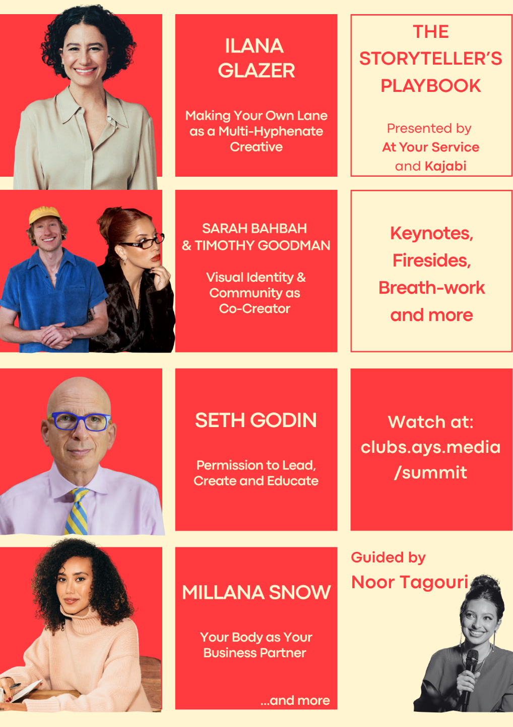 Featuring keynotes, fireside chats and breath-work, this is a fast-paced, engaging, and community-oriented summit for people curious about pursuing nontraditional paths in storytelling and creativity.